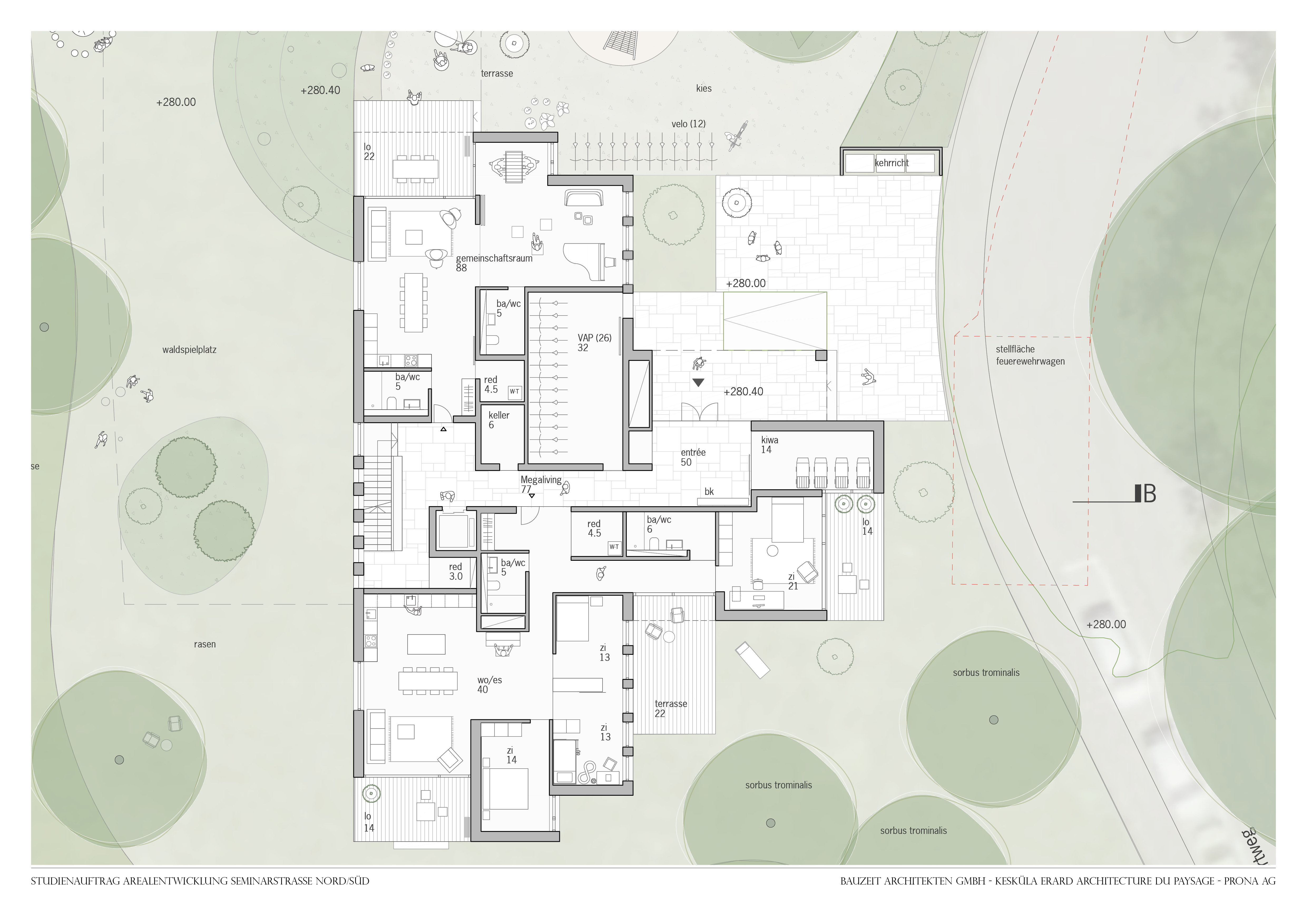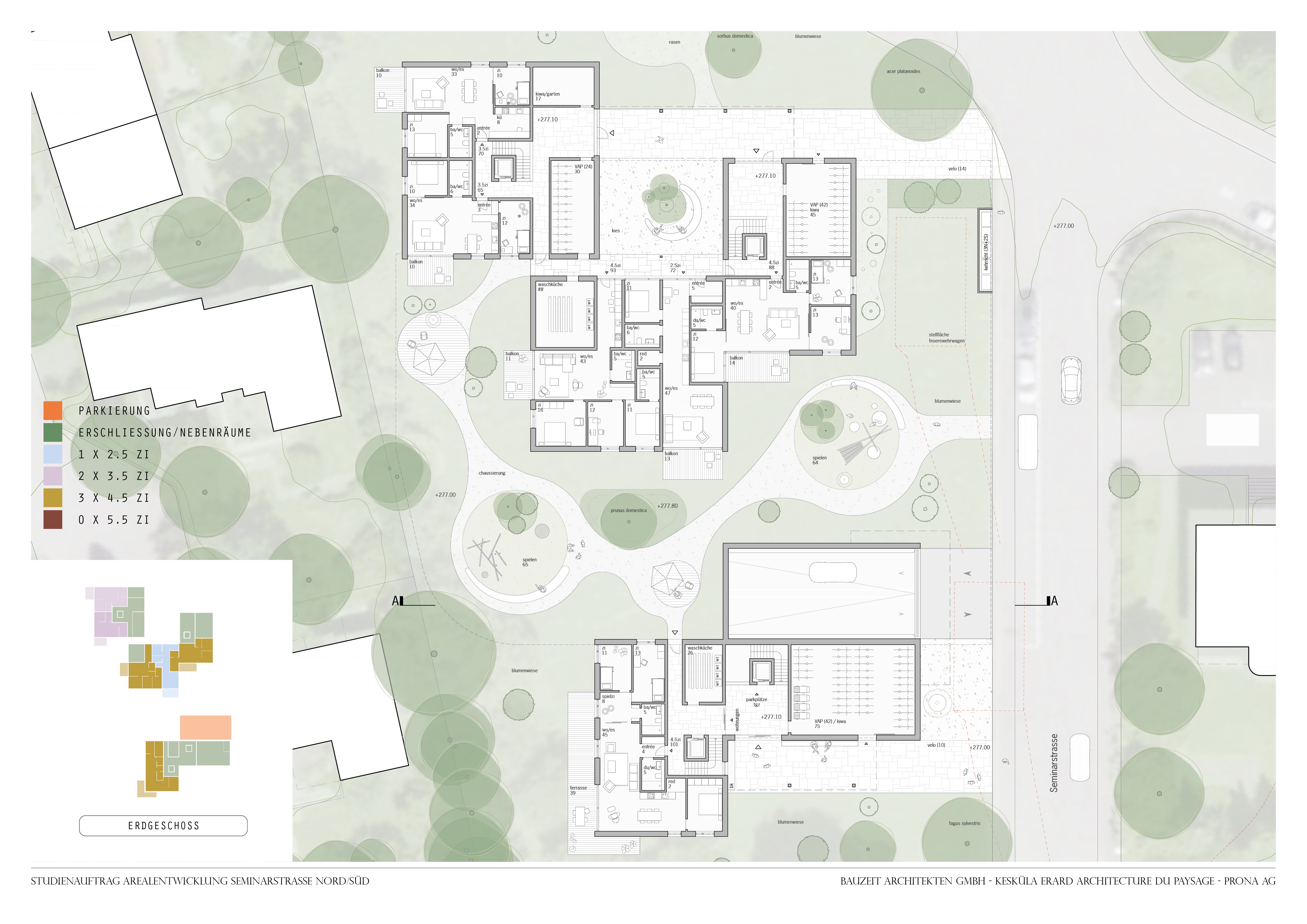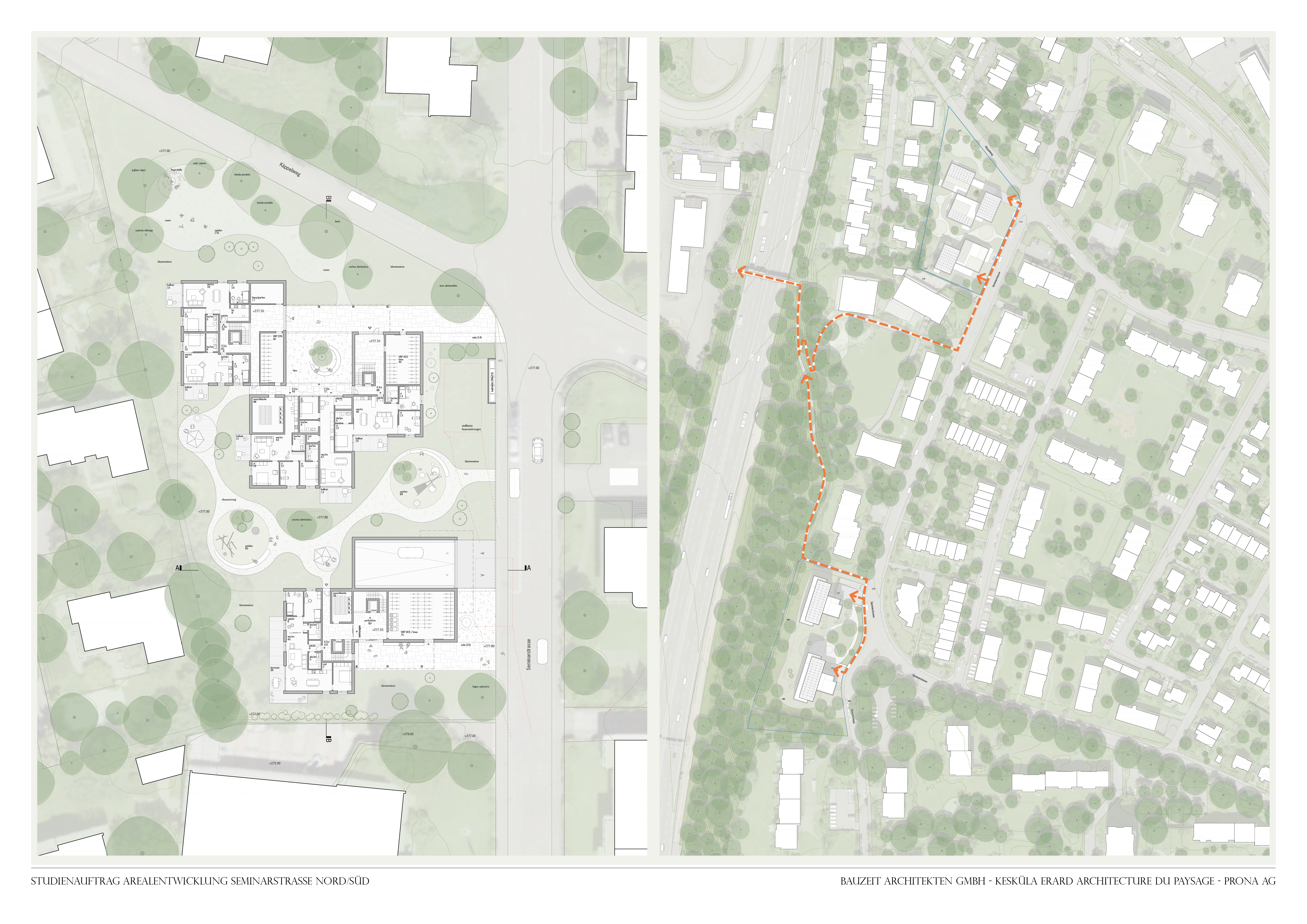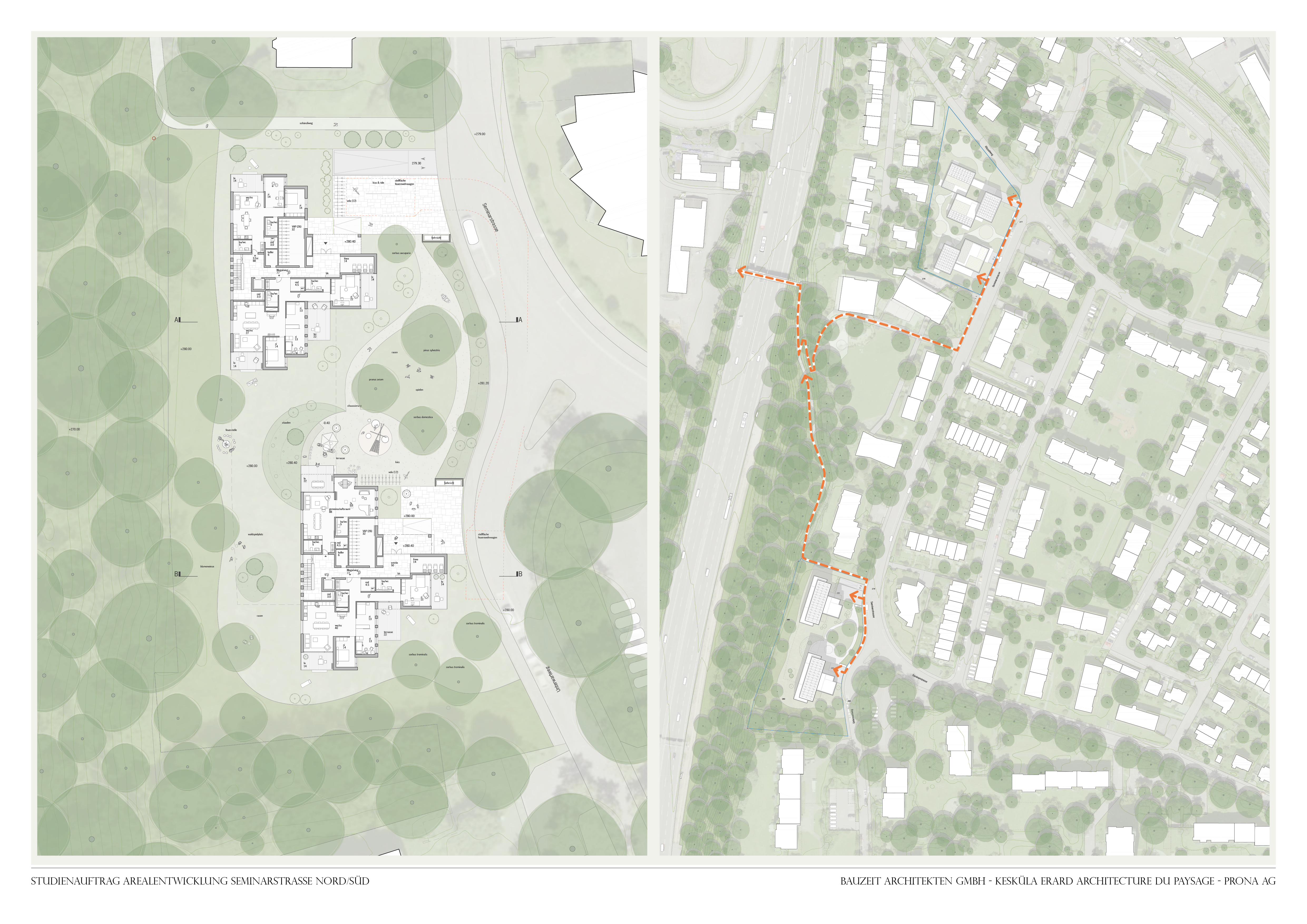 Dans le cadre du mandat d'étude, il s'agit d'élaborer des projets directeurs pour une utilisation résidentielle des parcelles n° 967 et 3500 situées dans la Seminarstrasse à Muttenz.